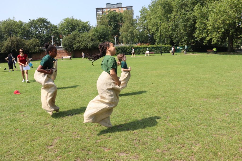 Each year, SJSJ have their own sports day at London Fields. This is an opportunity for parents and carers to support their children competing in various events such as javelin, sprints, obstacle courses, tug of war and more. Parents are also invited to join physical activities during the event such as the tug of war, sprint finals and agility course. Children’s achievements are celebrated throughout the event with stickers and medals are given to children who have demonstrated great sportsmanship, as well as those who have won in their finals.