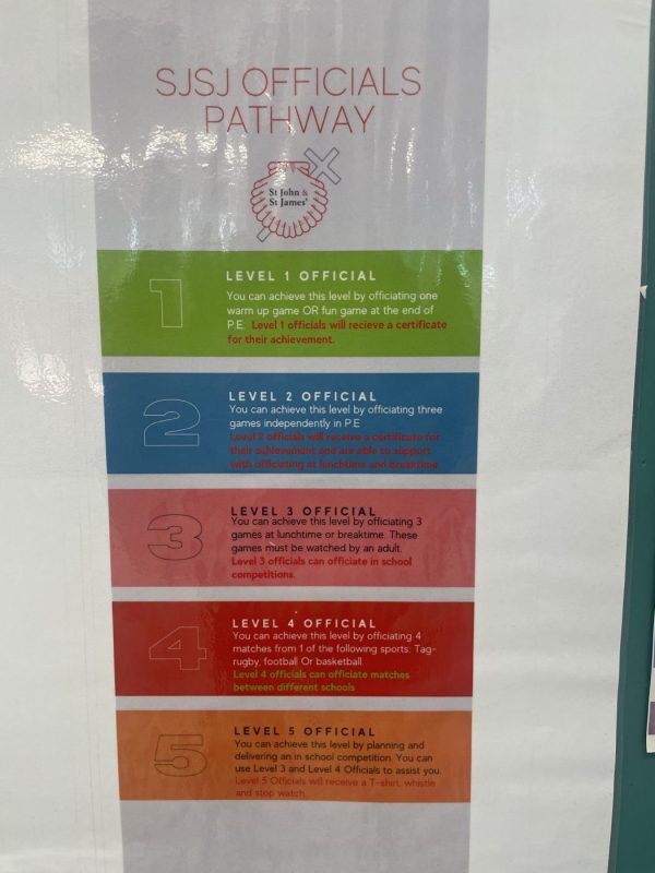 All children have the opportunity to join the ‘official’s pathway’ in school. The ‘official’s pathway’ is a programme that teaches pupils to lead, officiate and participate in sport through a range of roles such as being a football referee at lunchtime.